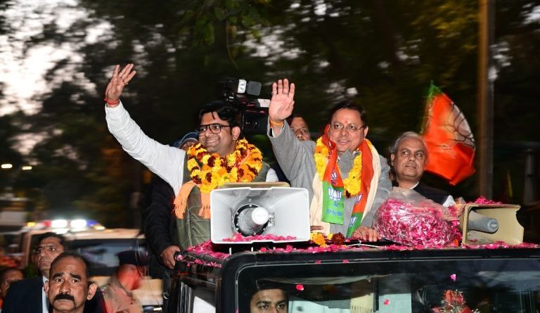 दिल्ली चुनाव- सीएम धामी ने पालम में किया भव्य रोड-शो